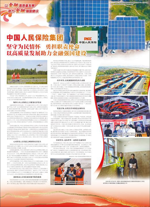 金融活水润泽千行百业,保险保障守护万家灯火。作为新中国保险事业的开拓者与奠基人,中国人民保险集团股份有限公司(简称“中国人保”)始终与时代同频、与国家共进,为人民而生、因人民而兴,在服务国家战略、保障民生福祉、推动行业进步中勇担重任,以扎实行动奏响金融服务中国式现代化的强音。